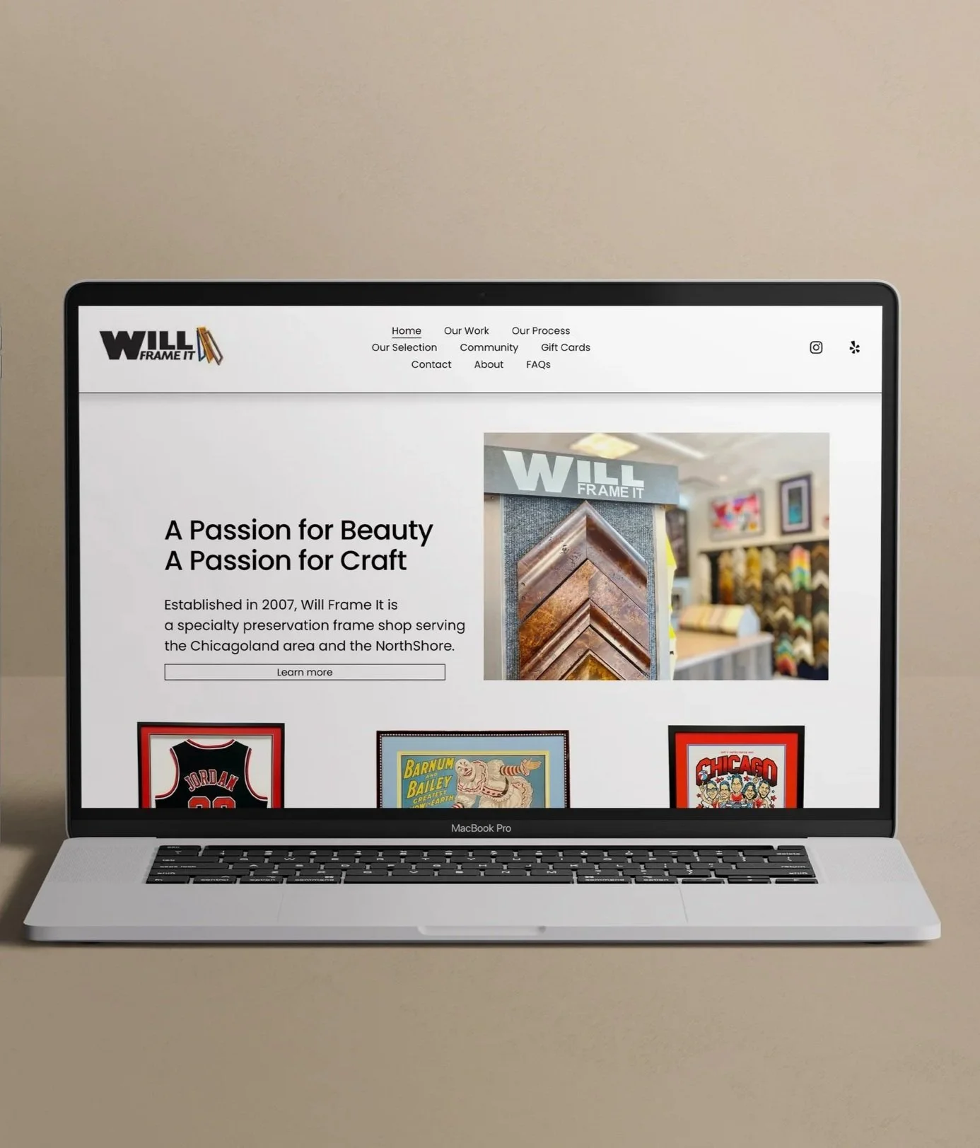Development of website, brand identity and Instagram design for a locally owned custom frame shop.
